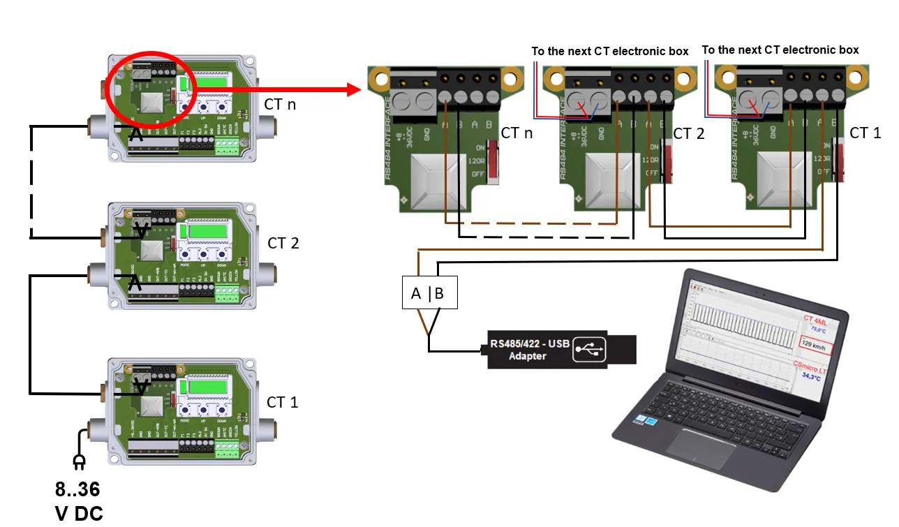 USB-to-Serial 컨버터를 사용하면 RS485 또는 RS422 장치를 컴퓨터 USB 포트에 바로 연결할 수 있습니다. RS485(EIA-485라고도 함)는 직렬 통신 시스템용 드라이버와 수신기의 전기적 특성을 정의하는 표준으로, 산업 자동화 및 제어 분야에서 널리 사용됩니다. RS485차동 신호 방식을 사용하여 두 개의 와이어(A B)에서 반대 전압 레벨로 데이터를 전송하므로, 전기적 잡음이 많은 환경에서도 장거리(최대 1200 m)에서 안정적인 통신이 가능합니다.