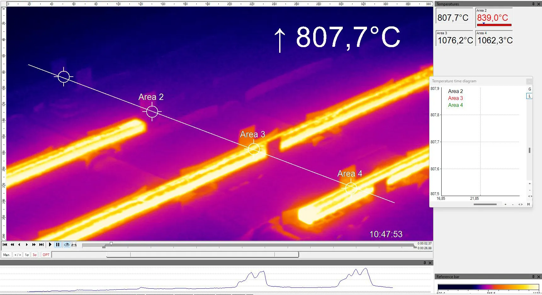비반사(non-reflective) 소재는 일반적으로 표면 질감과 관계없이 장파장 적외선 영역에서 높은 방사율을 나타내지만, 금속과 반사율이 높은 소재는 장파장 영역에서 방사율이 낮아 온도 측정값이 일관되지 않고 신뢰성이 떨어질 수 있습니다. Xi 1M의 단파장 파장대역은 대부분 금속 소재의 방사율이 최대인 영역과 일치하여, 높은 온도에서도 정확한 비접촉 온도 측정이 가능합니다. 플랑크의 복사 법칙에 따르면, 단파장은 더 큰 적외선 방사량을 발생시키므로 방사율 변동으로 인한 측정 반복성 영향이 줄어듭니다. 따라서 단파장 적외선 카메라는 고온 환경에서 반사성이 있는 금속 소재의 비접촉 온도 측정에 적합합니다. Xi 1M은 또한 자동 핫스팟 감지 기능을 갖추어 모니터링과 검사 작업의 효율성을 높입니다. 독일에서 제작된 Xi 1M은 장파장 적외선 카메라에 비해 산업 환경에서 뛰어난 정밀도, 정확도, 반복성을 제공합니다.