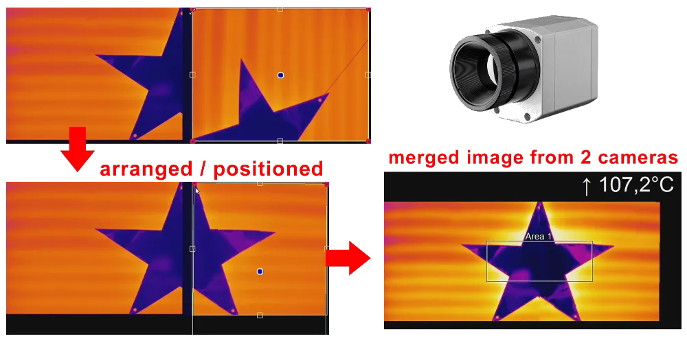 소프트웨어의 직관적인 인터페이스를 통해 쉽게 접근할 수 있으며, 이미지가 기울어져 있거나 해상도가 서로 달라도 여러 대의 Optris 적외선 카메라 영상을 하나의 통합된 화면으로 결합할 수 있습니다.