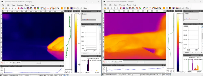 이미지가 정렬되면 소프트웨어는 이를 매끄럽게 블렌딩하여 일관된 파노라마를 만든다. 여기에는 이미지들 간의 강도 수준을 조정하고 온도 차이를 보정하여 균일성을 확보하는 작업이 포함된다. 그 결과는 개별 이미지보다 훨씬 넓은 시야를 제공하는 합성 열화상으로, 해당 영역의 포괄적인 열 지도를 제공한다.